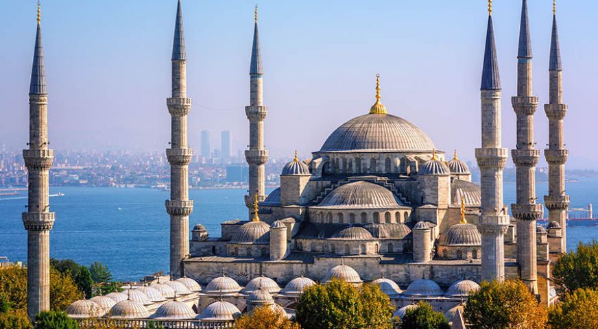 Посещение на Хиподрума. По време на разходката ще видите Египетския обелиск, Змиевидната колона и фонтана на Вилхелм II-ри. Посещение на джамията Султан Ахмед (Синята джамия), издигната с 6 минарета и до днес е символ на града. Получава името си заради малките сини плочки, докарани специално от Изник, които красят цялата й вътрешна част. Обиколката продължава с посещение на двореца Топкапъ* – главният султански дворец. Строежът на двореца е завършен през 1478 г. по поръчка на султан Мехмед II-ри Завоевателят на стратегическо място между Златния рог и Босфора. Със своите 4 двора и около 400 стаи повече от 400 г. дворецът служи като дом на османските султани. Следва посещение на Египетския пазар, известен още като пазара на подправките.