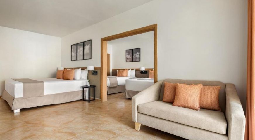 В стаите: Техните 1091 стаи и апартамента предлагат зашеметяваща гледка към буйни тропически градини, блестящи басейни и зашеметяващия плаж Баваро. Комфортните помещения разполагат с прекрасни частни балкони или тераси, както и с редица удобства. Семействата имат възможност да избират стаи, които се свързват, за да си осигурят комфортен престой. Стаята разполага с минибар, телевизор, сейф и Wi-Fi.
