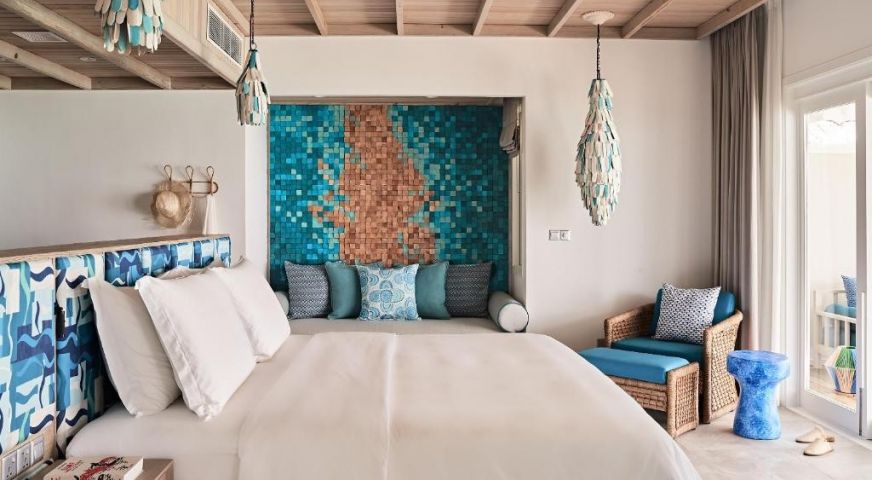 В стаите: Стаите са оборудвани със сейф, ежедневно почистване, вентилатор на тавана, тоалетни принадлежности, телевизор с плосък екран, външен душ, шезлонги, сешоар, климатик, минибар (срещу заплащане), тераса, рум сървис (срещу заплащане), телефон, удобства за приготвяне на чай и кафе (безплатно), Wi-Fi (безплатен), легло king-size, озвучителна система Marshall и памучно спално бельо.
