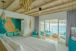 Кинг сайз легло (2.1×2.1 м), настаняване до 2 възрастни + 2 деца или 3 възрастни, площ 205 м², директен достъп до плажа (лагуна), подходящо за семейства.