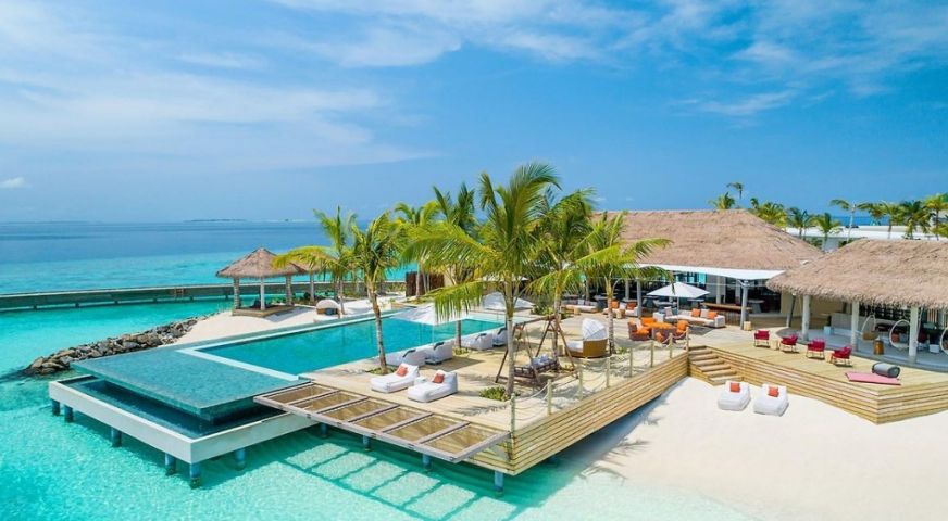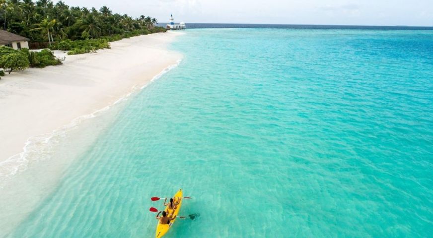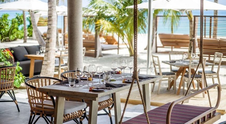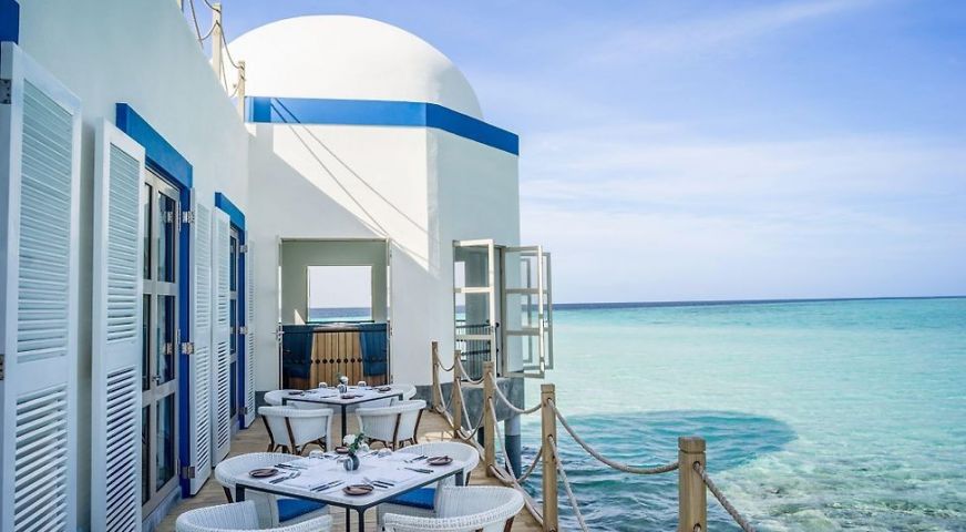 На територията: На разположение на гостите има 5 ресторанта. В The Lighthouse се предлагат средиземноморски тапас на фона на 360-градусов изглед, в The Fish Market ястията от прясно уловена риба са вдъхновени от Южна Азия, а в Café Umi се сливат различни междуконтинентални вкусове. Гостите могат да се отдадат на романтика с авторски коктейли в бар The Sunset Bar или да се презаредят в The Retreat, отделно място само за възрастни с изглед към тъмносинята лагуна. Dining by Design предлага персонализирани преживявания като круиз по залез. Организира се и гурме пикник, а филмовата вечер под звездите ще създаде незабравими спомени за цял живот.