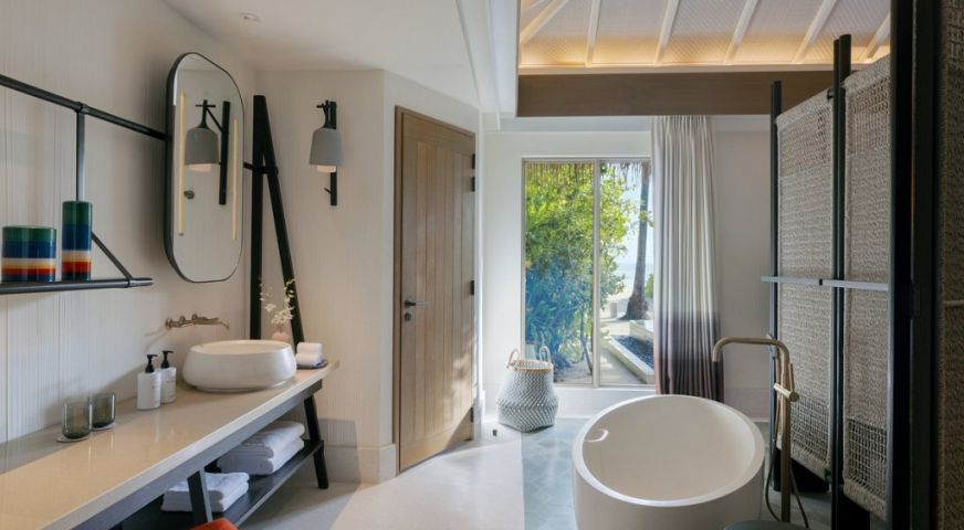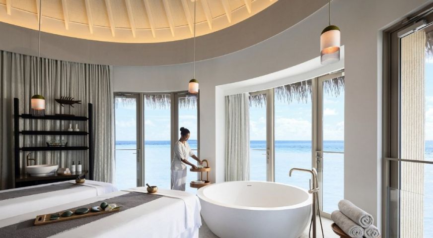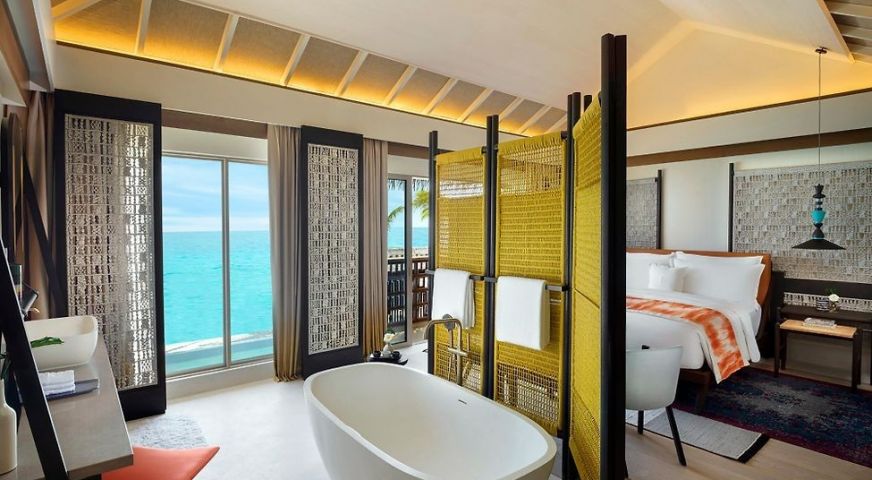 В стаите: Предлага възможност за настаняване във вили и резиденции на плажа, над водата и в лагуната. Стаята разполага със сешоар, Wi-Fi, халати и чехли, сейф, баня с вана или душ, тоалетна, телевизор, минибар, вентилатор, климатик, удобства за приготвяне на чай и кафе, тоалетни принадлежности. Стаята се почиства ежедневно, спалното бельо и кърпите се сменят ежедневно. 24-часово обслужване е на разположение срещу заплащане.