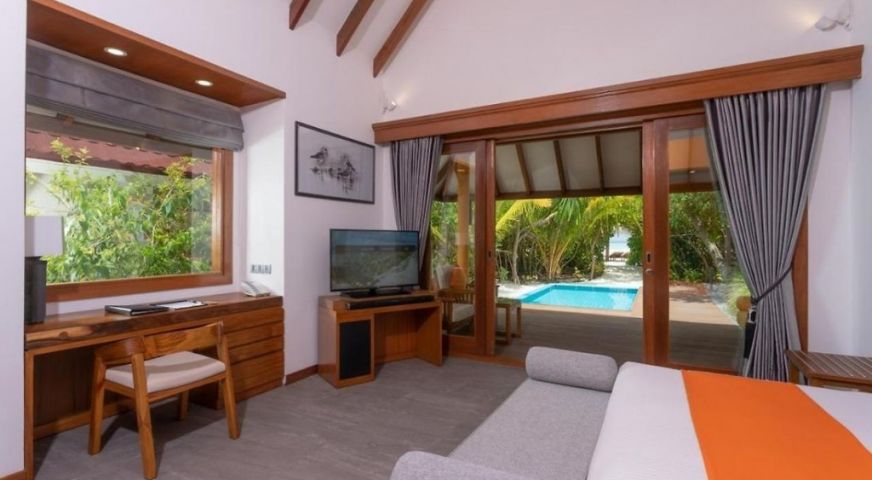 Удобства във вилите: Легло King Size, тоалетка, гардероб, климатик, сейф, мини бар, IDD телефон, WiFi интернет, LED телевизор, Съоръжения за чай/кафе, масичка и столчета за кафе на верандата, външни шезлонги.