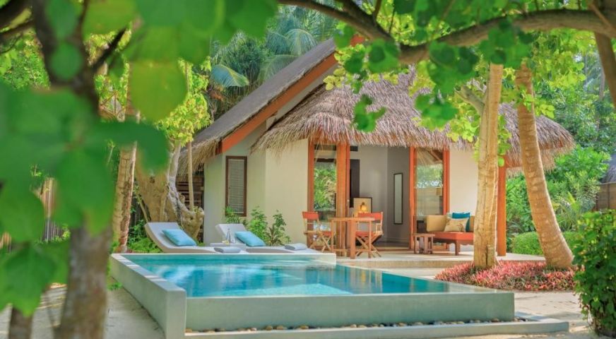 Хотелът перфектно съчетава малдивската екзотика с високо ниво на комфорт. Гостите ще намерят един от най-големите панорамни басейни на Малдивите, частен плаж, СПА център, детски клуб, три ресторанта, два бара, риф, обграждащ острова. Подходящ както за семейни почивки с деца, така и за романтично бягство за двама.
