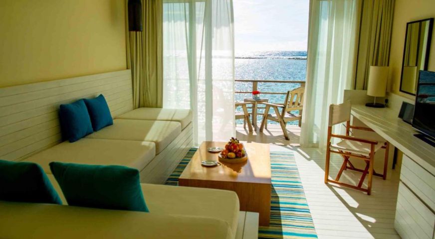 2 ресторанта, 3 бара, открит басейн, СПА център, фитнес, тенис корт, магазин, детски клуб (4-12г.), водни спортове и гмуркане, Wi-Fi интернет.