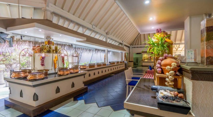 Основният ресторант е на базата на пищен бюфет, в който освен на морски дарове от местността и на вкусове, типични за Малдивите, гостите могат да се насладят и на ястия от целия свят – от екзотиката на Азия до изисканите есенции на западната кухня. В ресторанта се провеждат тематични вечери, които преобразяват вечерята в пътешествие около света с щателно изготвено меню и вкусове, които ще завладеят всяко небце. Дизайнът на ресторанта позволява нежният морски бриз да обогатява атмосферата и преживяването на гостите.