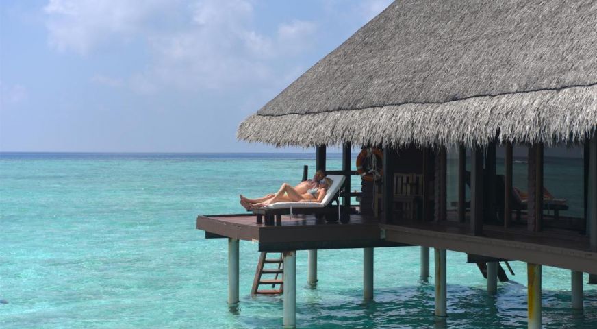 10 Water Villa (57 кв. м) – Спокойствие дирекно над океана. Стаите разполагат със собствена слънчева тераса с постоянен достъп до синия рай на океанските води.