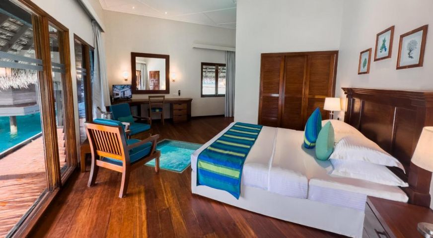 Хотелът разполага със 122 помещения за настаняване, от които 96 са стаи, а 26 са водни бунгала. Интериорът е с тропически декор, пренасяйки гостите си в магическата атмосфера на острова.