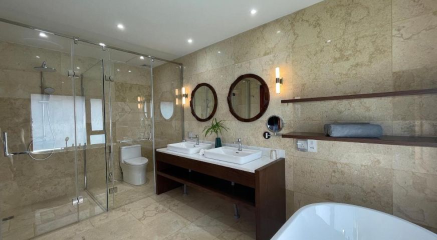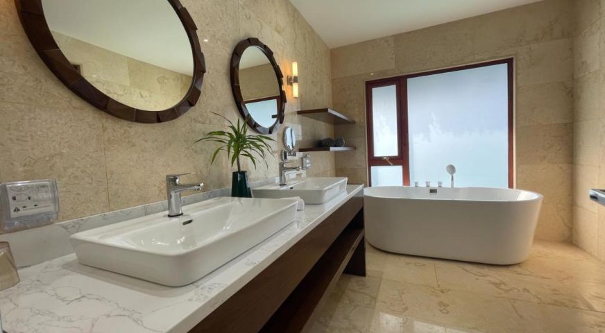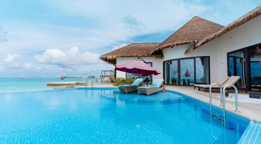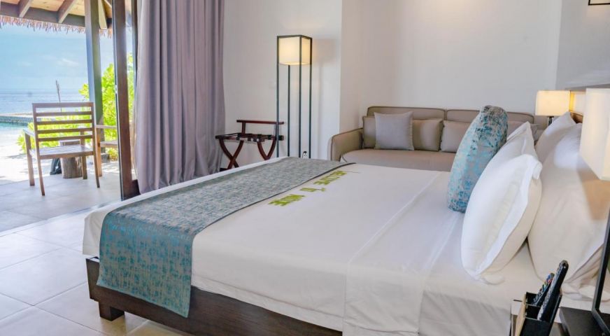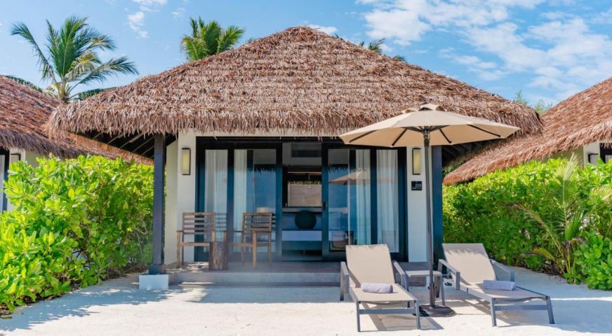 Beach Villa (62 кв. м) – Вили с директен достъп до пухкавия пясъчен плаж, излъчващ чисто блаженство. Гостите могат да се насладят живописния пейзаж от външната зона на вилата. Освен със стандартния втрешен душ, този тип помещения разполагат и с външен душ.