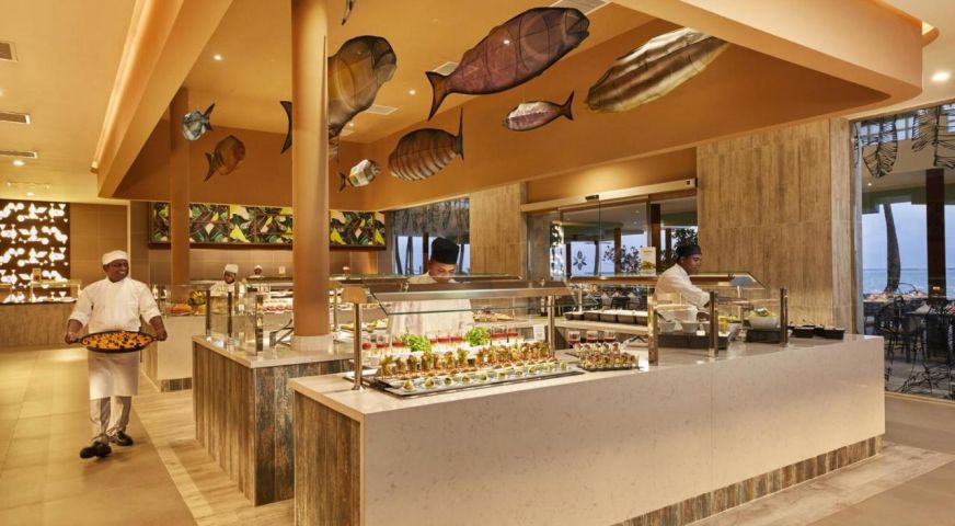 На територията на хотела има 3 ресторанта, сред които и 2 а-ла-карт ресторант (фюжън и японски), и бар. Гостите на хотела имат достъп и до 2 а-ла-карт ресторанта (италиански и стакхаус) и 2 бара, който се намират в съседния RIU Atoll.
