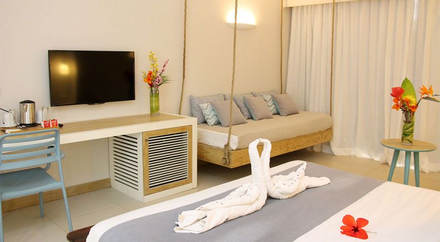 Хотелът разполага с общо 150 стилно и модерно обзаведени стаи в приятни меки тонове, от които Superior Rooms (30 кв.м), Deluxe Rooms (40 кв.м), Ocean Front Rooms (30 кв.м), Bungalows с 1, 2 и 3 спални, кухненски бокс и дневна (65, 80 и 120 кв.м). Всички стаи са оборудвани с: индивидуален климатик, телефон, телевизор с плосък екран и сателитна телевизия, вентилатор на тавана, Wi-Fi (безплатно), мини бар, сет за кафе и чай, електронен сейф (безплатно), баня с душ, сешоар, ютия и дъска за гладене и адаптери при поискване, балкон или тераса.