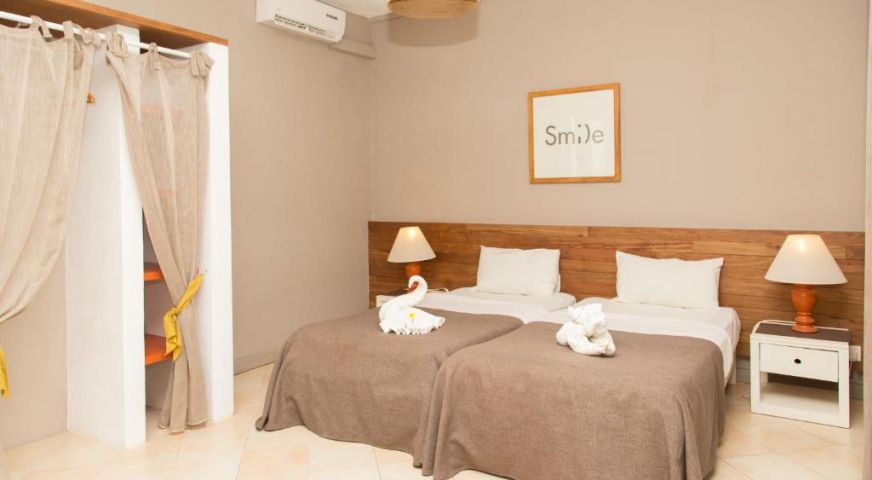 Хотелът разполага с общо 50 стаи, от които 32 Standard room (24 м2), 15 Family room (2 спални, 1 баня - 33 м2). Всички стаи са оборудвани с климатик, телевизор, телефон, баня с душ, сешоар, сет за кафе/чай, мини-бар, сейф. Почистване на стаите и смяна на кърпите - всеки ден, смяна на спалното бельо - 2 пъти седмично. Светли и модерни стаи със свежи оранжеви нюанси, с минималистичен дизайн, предлагащи комфортен престой.