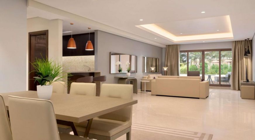 Хотелът разполага с 102 помещения за настаняване от типовете: DELUXE STUDIO APARTMENT, ONE BEDROOM APARTMENT, TWO BEDROOM APARTMENT и THREE BEDROOM APARTMENT. Всички стаи са оборудвани с климатик, HD телевизор със сателитна и интерактивна уеб телевизия, високоскоростен Wi-Fi, сейф, телефон, ютия и дъска за гладене, кухненски бокс и кухненски съдове, хладилник, пералня със сушилня, сешоар, баня с душ/вана.