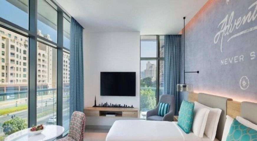 Стилен хотел с открит басейн се намира на Палм Джумейра, близо до търговския център Nakeel и крайбрежната алея The Pointe с фонтани.
