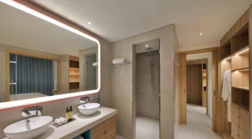 В стаите: Стаята разполага с всичко необходимо за комфортен престой: вана и душ, халат и чехли, аксесоари за баня, сешоар, климатик, телевизор, телефон, минибар, удобства за приготвяне на чай и кафе, ютия и дъска за гладене, питейна вода, диван, безплатен Wi-Fi и сейф.