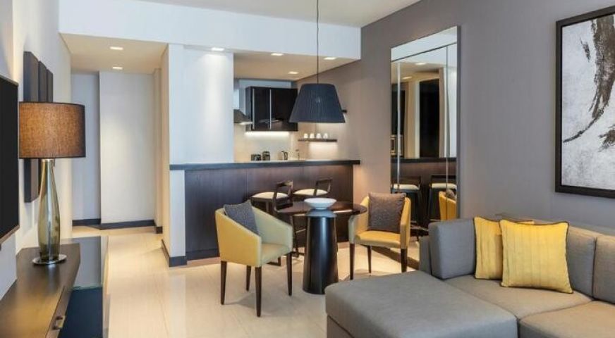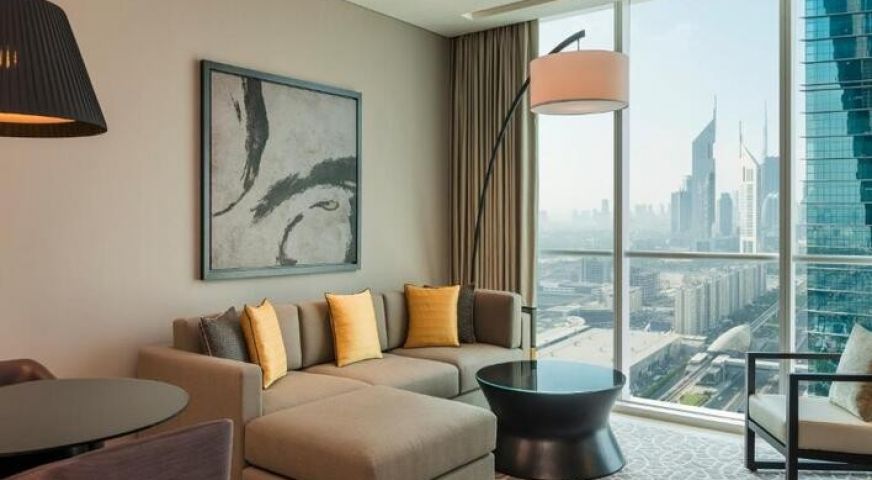Разположение: В центъра на новия район Downtown Dubai, близо до Dubai World Trade Center, Dubai International Financial Center, както и Dubai Mall и кулата Burj Khalifa, на 10 км от международното летище Дубай.