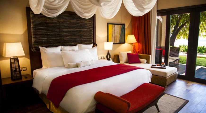 Grand Beach Pool Villa (250 кв. м) – Вилите, сгушени до плажа, предлагат несравнимо преживяване. Голямото легло, просторна зона за отдих, отделна трапезария са само част от обширния набор от модерни удобства.