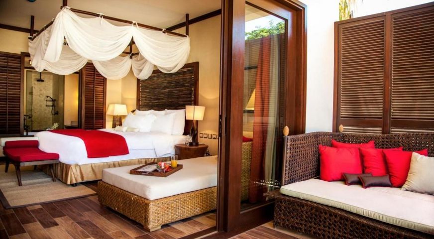 Всички помещения са в комбинация на модерен интериор и традиционен сейшелски стил. На разположение на гостите са двойно легло и кът за отдих. Банята включва самостоятелно вана, двойна мивка и отделен душ. Голям балкон с изглед към пищната зеленина на градините на курорта. Оборудвани са с климатик, удобства за приготвяне на чай и кафе, телевизор, халат за баня и чехли и минибар. Всички стаи разполагат с Wi-Fi и Smart TV със сателитни канали.