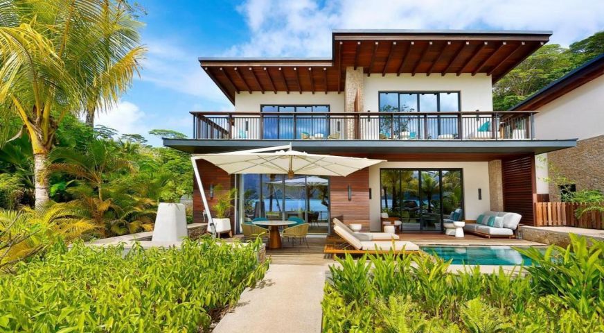 Този 5-звезден хотел предлага 24-часова рецепция и рум-сървиз. Хотелът разполага със стаи и вили на първа линия, всяка със самостоятелни тераси или балкони с изглед към Индийския океан. Храненето включва 5 уникални заведения, чиято кухня предлага кулинарното наследство на Южно Махе. Хотелът разполага с множество малки басейни, уелнес център с две специални стаи за процедури, център за водни спортове, фитнес, безплатен Wi-Fi.