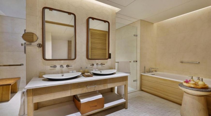 - Едноспален апартамент с гледка към океана: С площ 94 кв. м. и капацитет до 3 възрастни. Стаята е оборудвана със спалня, стилна всекидневна с маса за хранене и разтегателен диван, тераса с кушетка. Тази стая се намира на брега на морето и разполага с голяма тераса с кушетка, всекидневна с маса за хранене и личен бар. Специалните удобства включват безплатен Wi-Fi, удобства за приготвяне на кафе / чай и баня.