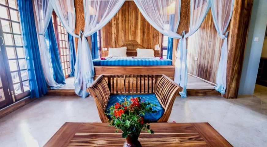 Хотелът настанява гостите си в климатизирани стаи и суити с изглед към Индийския океан или градината. Мебелирани в местен стил, стаите са оборудвани с телевизор, минибар, сейф и мрежи против комари, баня с душ/вана, сешоар. Стаите с двойно и 2 отделни легла са разположени на горен етаж и предлагат балкон с изглед към морето. По-просторните суити са с кът за сядане и веранда с морски изглед или с изглед към градината.