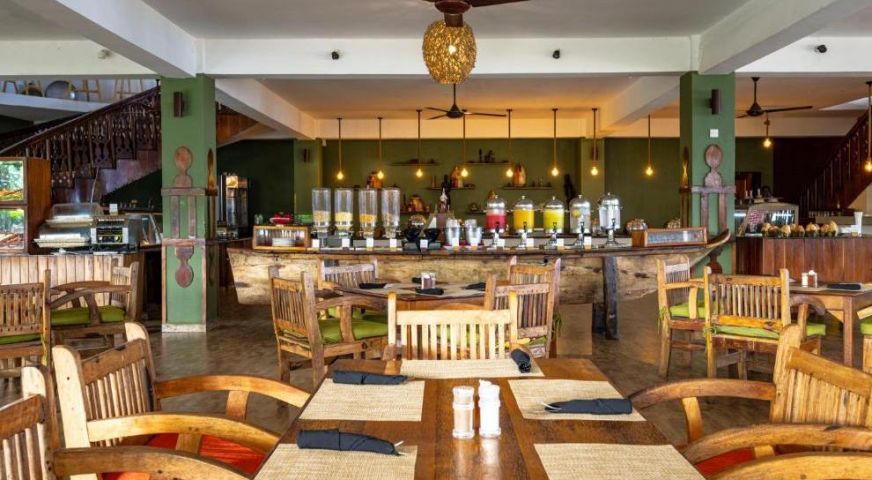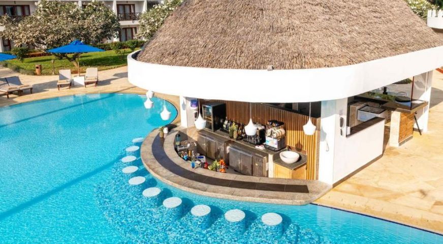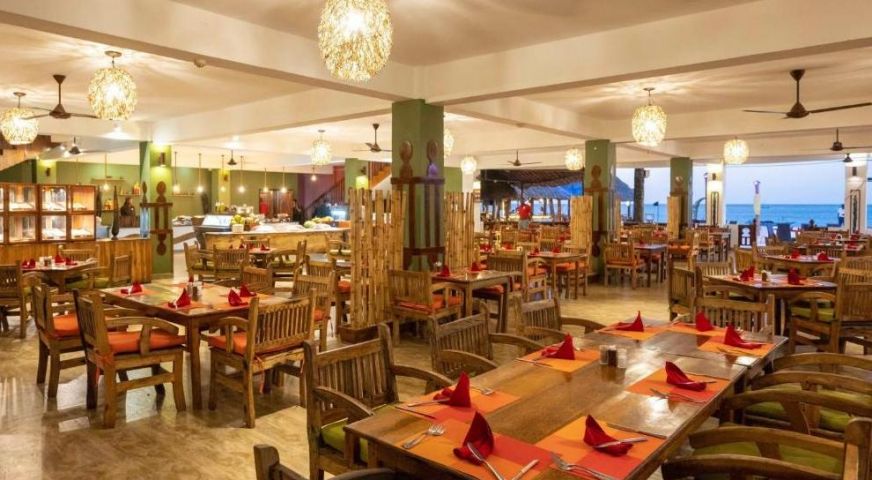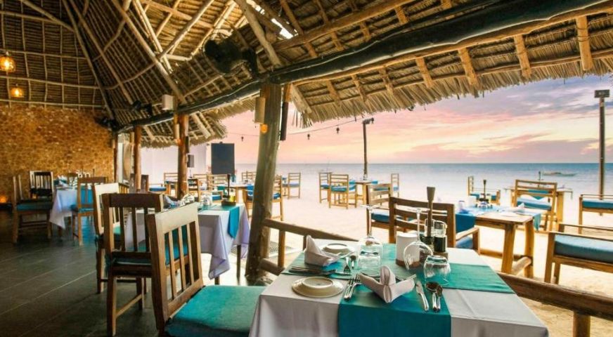 На разположение на гостите са 2 ресторанта. Основният ресторант Ngalawa предлага закуска, обяд и вечеря на блок маса; а`ла карт ресортантът Fisherman's Seafood & Grill се намира на плажа и предлага морски деликатеси и интернационална кухня. Лоби бар Kasuku Café е кафене, разположено във фоайето и предлага голямо разнообразие от топли и студени напитки в допълнение към селекция от сандвичи, печива и сладкиши; барът при басейна Dolphin's Bar поднася напитки или обяд от снек менюто; барът на плажа ZeeBar предлага голямо разнообразие от напитки и меню с леки закуски с директен изглед към индийския океан; Sunset Bar е All Inclusive бар, предлагащ голямо разнообразие от напитки, оборудван с билярдни маси, дартс, тенис на маса и библиотека с изглед към Индийския океан.