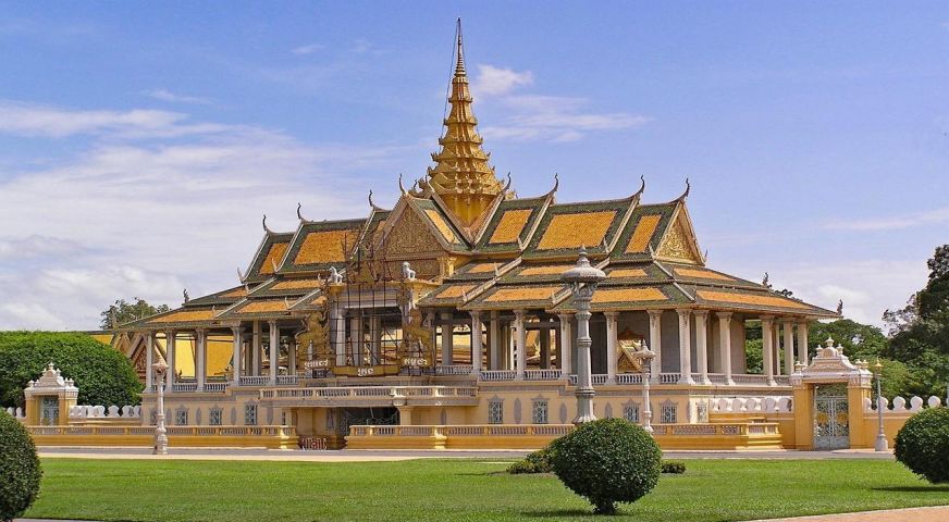 Посещение на Кралския дворец, построен през 1866г oт дядото на сегашния крал на Камбоджа. Представлява комплекс от великолепни кралски постройки с класически кхмерски покриви, богато украсена позлата и скъпоценности, интригуващи оформления на отбранителните стени с класически кхмерска архитектура и лек френски привкус. Продължава и днес да е седалище на краля, а най-силен интерес будаят няколко сгради от комплекса като павилиона Чан-Чая,използван за публични тържества, церемонии и празнични концерти; Сребърната пагода-изградена като храм на Буда,наричан Изумрудения Буда- статуя със специално централно място в храма - върху златна подпора от злато и скъпоценни камъни и Тронната зала - най-монументалната структура на комплекса.