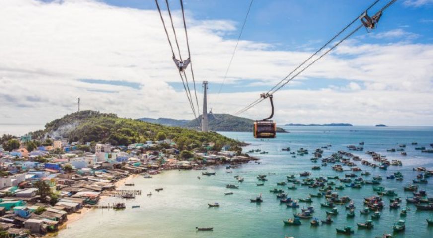 Закуска. Тръгване от хотела. Посещение на фермата за перли Нгок Хиен - една от задължителните атракции на остров Фу Куок, която трябва да видите, за да научите как се „отглеждат“ и обработват перлите. Разбира се, ще можете и да си купите автентични изделия от перли, които носят успех и късмет. След това ще продължим към Sunset Town /Градът на Залеза/, известен като„Средиземноморският град“ на Фу Куок - едно от най-предпочитаните от туристите места за отсядане на острова. Тук можете да видите известни забележителности от цял свят като Триумфалната Арка, руините на Помпей, Колизеума и др., чиито копия са толкова реалистични, че трудно ще откриете различията с оригинала. Kiss Bridge /Мостът на целувката/ е следващата ни спирка. Този мост над Сребърната река разказва легендата за любовта между овчаря Нгу Ланг и принцеса Чук Ну, разделени завинаги от бащата на девойката – Нефритения император / заплаща се допълнително/, които веднъж в годината, по милостта на императора, се срещат именно тук. Маршрутът продължава към станцията на кабинковия лифт, разположена в района на природен парк Сън Уърлд Хон Том, предлагащ грандиозни гледки към океана. Ще можете да направите красиви снимки и на Римската порта (Виетнамска версия). Това е най-дългият, постоянно движещ се трипосочен лифт в света, вписан в книгата за рекордите на Гинес (7 899.9 м). Цялата му дължина е 7 899 м. От неговата височина ще можете да видите синьото море, девствената джунгла, просторното и необятно небе и златистия пясък на плажовете Фу Куок.