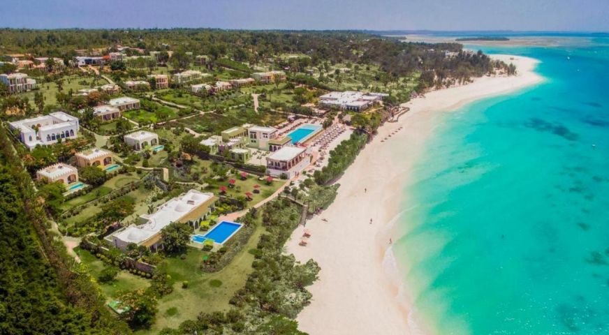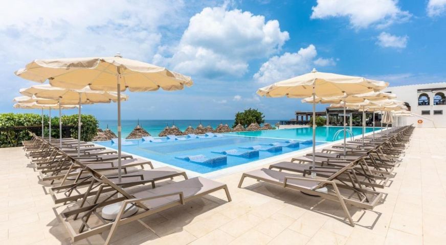 RIU Palace Zanzibar 5*е разположен на северозападното крайбрежие на Занзибар, на красивия плаж с бял пясък Нунгви. Град Стоун Таун е на 55 км от хотела. Хотелът Riu Palace Zanzibar се намира на красив плаж с бял пясък с кристални води и предлага на своите гости почивка на база ол инклузив с качеството на веригата RIU Hotels & Resorts В Riu Palace Zanzibar. На разположение на гостите са три басейна, СПА център, ресторанти и барове. За доброто насроение се грижи екип от аниматори, а вечер има музика на живо.Общите части и стаите разполагат с безплатен Wi-Fi.
