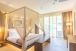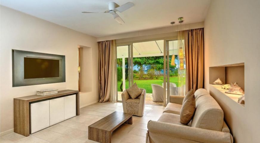 Villa –125 м2, максимално настаняване 4 възрастни, спалня King Size и разтегателен диван в дневния тракт, душ/вана, мини бар, сейф, сешоар, климатик, безплатенWi-Fi, балкон/тераса с изглед към градината. Има няколко варианта на този тип помещения като всички са с една и съща площ, но с различен изглед и възможности за настаняване.