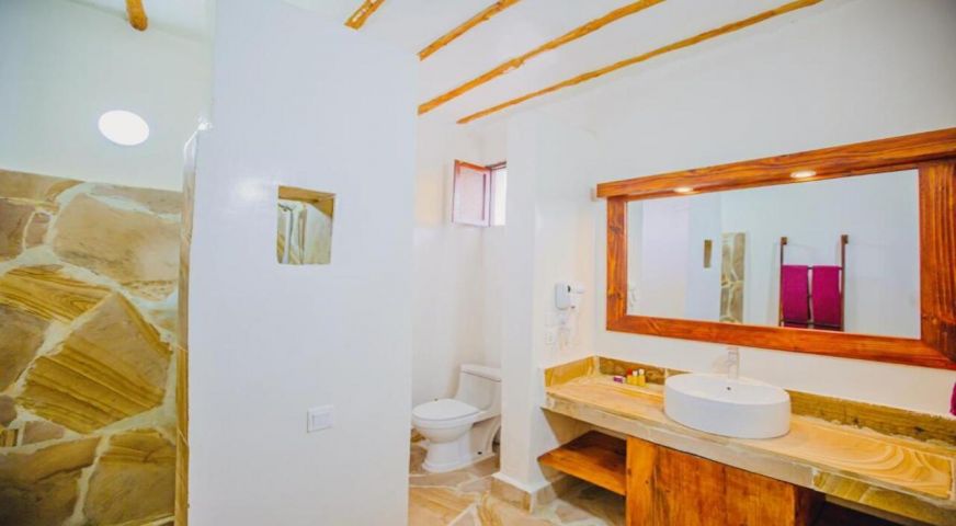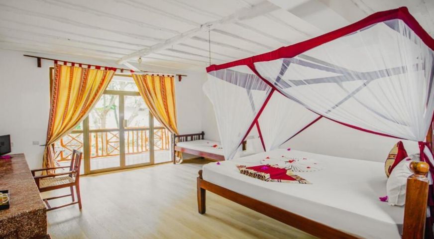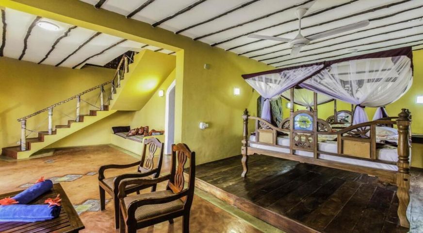 Всички стаи са обзаведени в традиционен занзибарски стил с дърворезба и естествени материали.