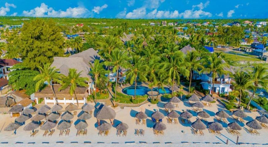 AHG Waridi Beach Resort and Spa е елегантен комплекс, съчетаващ традиционна занзибарска архитектура с модерни удобства. Сред зеленината на кокосови палми и тропически градини, хотелът предлага спокойна атмосфера и комфорт за двойки, семейства и групи приятели. Разполага с открит басейн с гледка към океана, спа център, фитнес зона и анимационна програма.