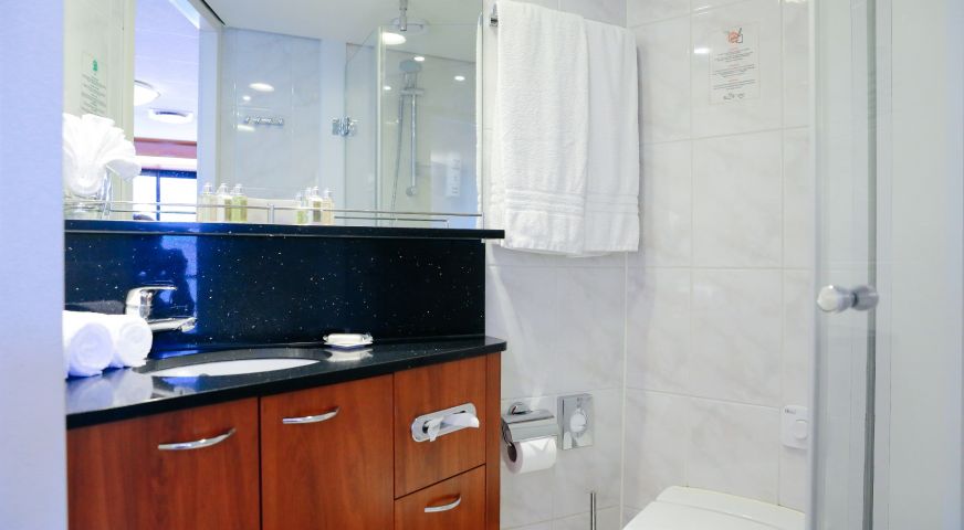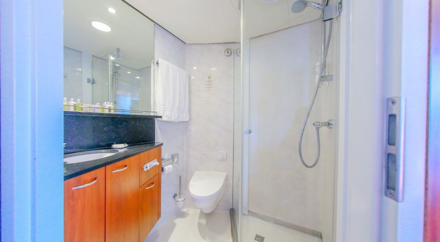 Каютите са с площ от 12.30 м2. Всички разполагат с индивидуален климатик, сателитна ТВ, сешоар, сейф, телефон, баня и тоалетна.