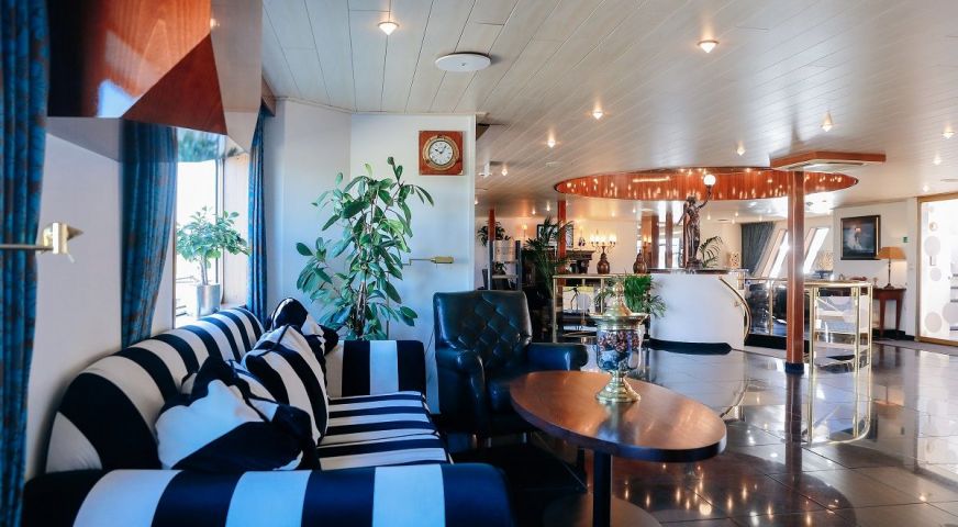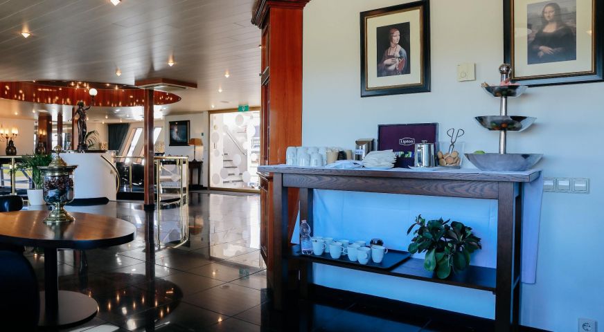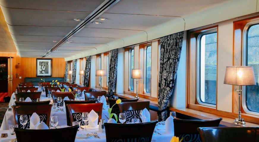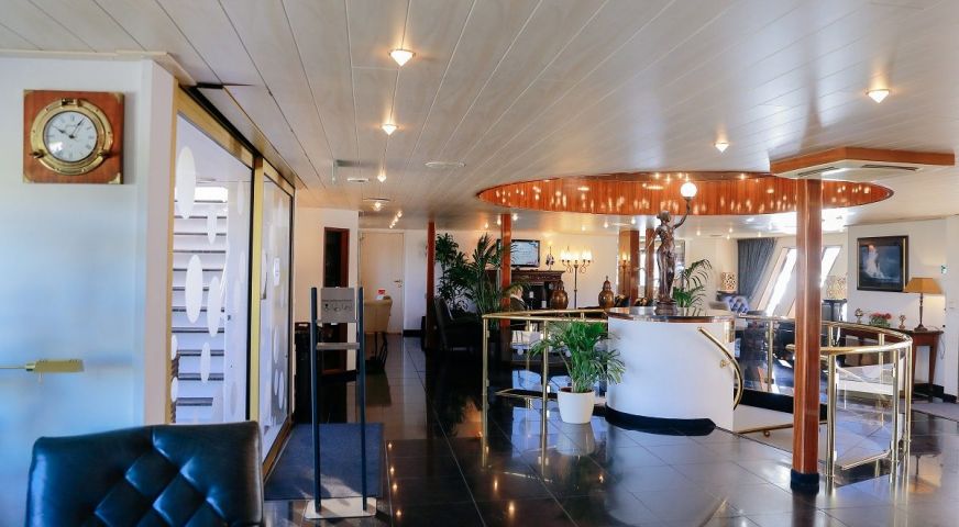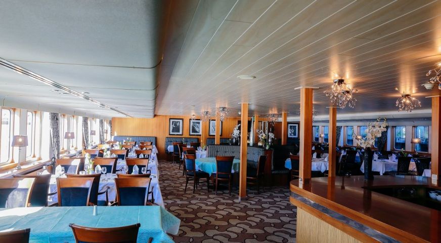 Корабът разполага с 3 палуби, капацитетът е 110 гости.
