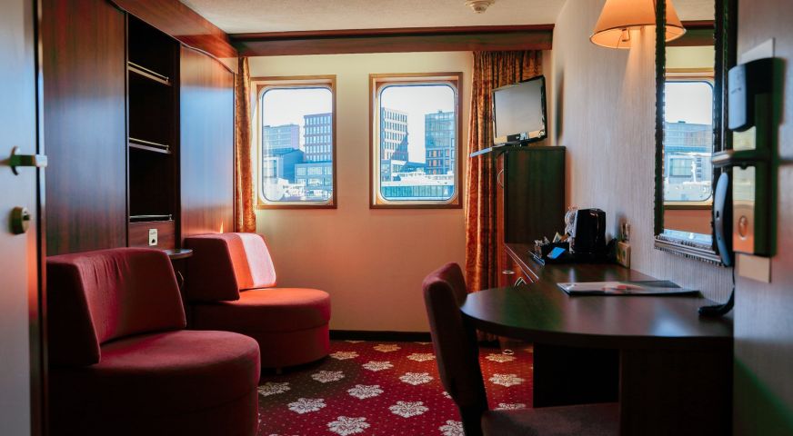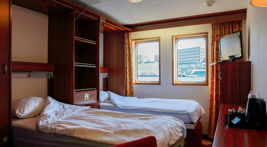 Каютите на основна палуба са с легла, които през деня се вдигат и превръщат в удобни места за сядане. Всички те са с прозорци.
