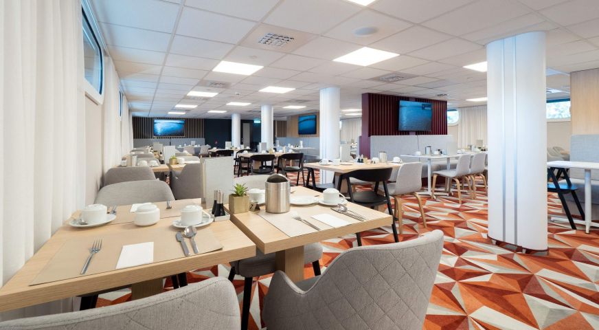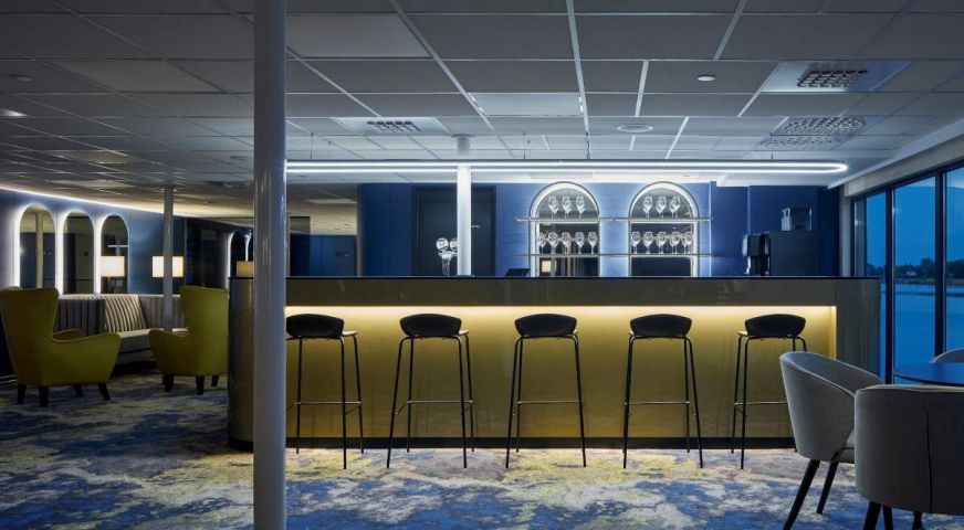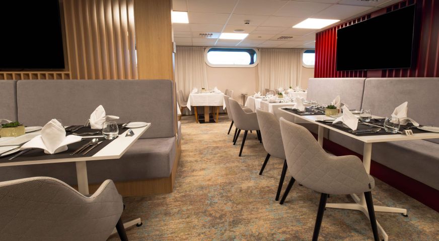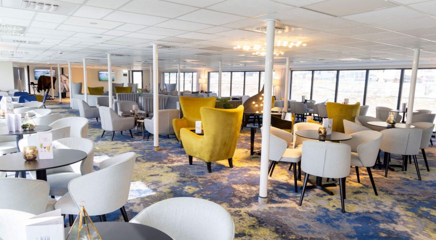 На борда ще намерите панорамен салон с бар, бар на кърмата, ресторант на основна палуба, голяма слънчева палуба с места за сядане, асансьор.