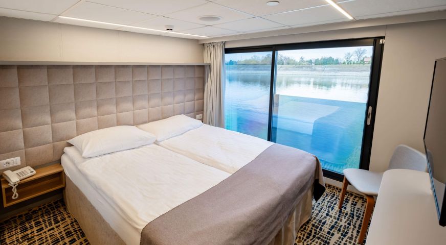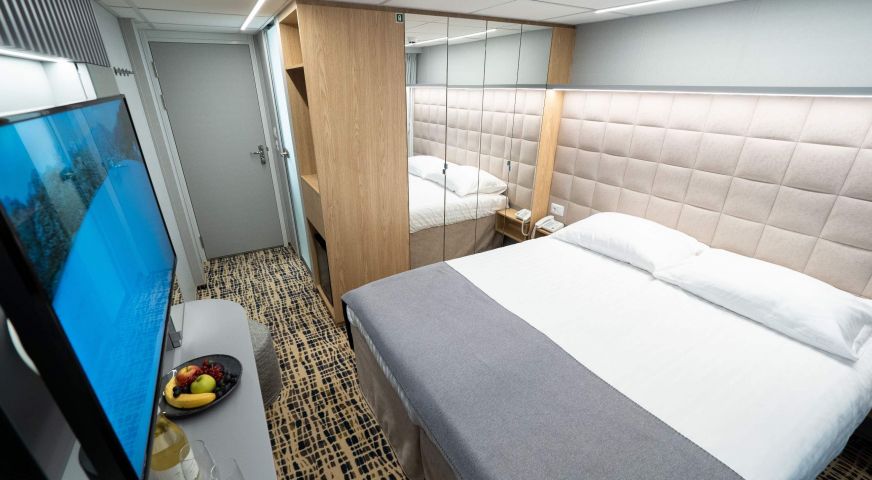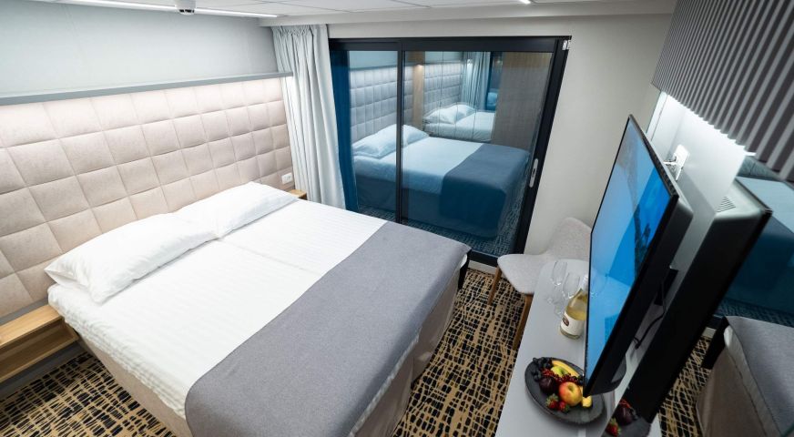 Каютите на средна и горна палуба са с площ от 14 м2 и големи френски отварящи се прозорци.