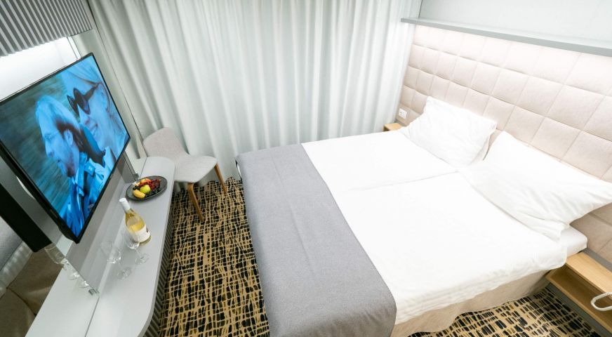 Всички каюти са с индивидуален климатик, сателитна телевизия, вътрешен телефон, мини бар, сешоар, сейф.