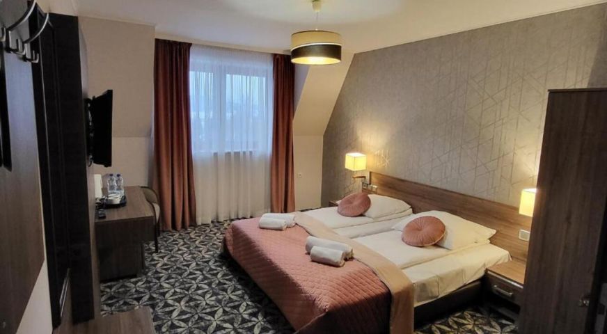 - Стандартни стаи – с две отделни легла или едно двойно, оборудвани с телевизор, бюро, гардероб, Wi-Fi и баня с душ.