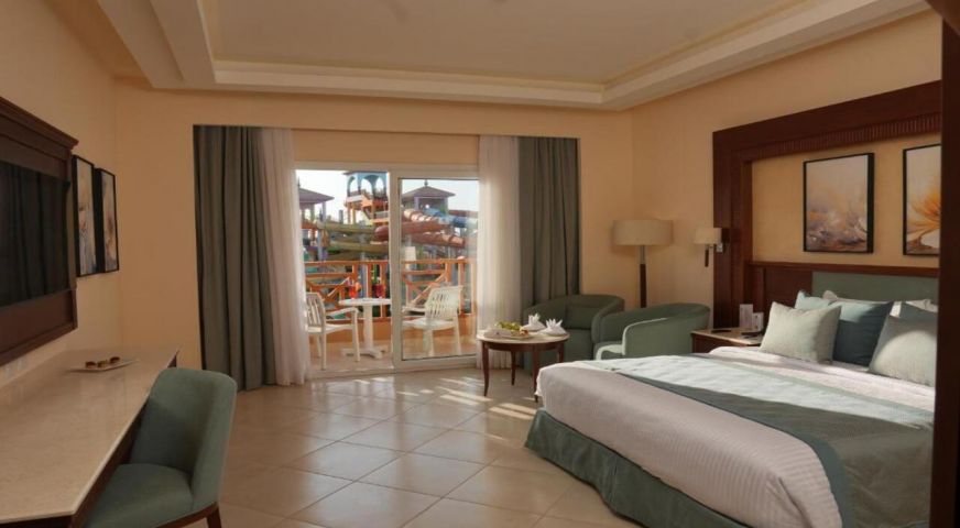 Хотелът предлага настаняване в просторни и функционални стаи с гледка към градината, басейна или аквапарка. Всяка стая разполага с