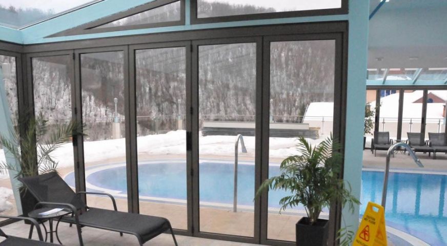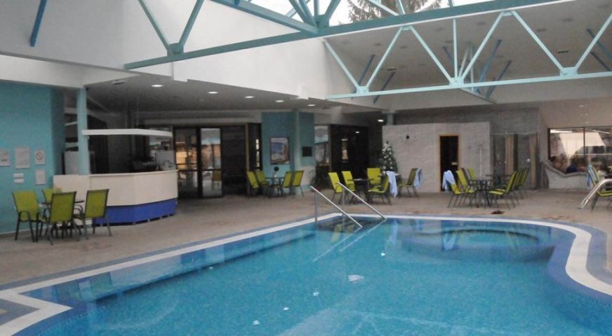 СПА център: Уелнес центърът на хотела предлага вътрешен и външен басейн, сауна, парна баня, джакузи, тепидариум - топло помещение с подово отопление и подгреваеми седалки, солна стая.