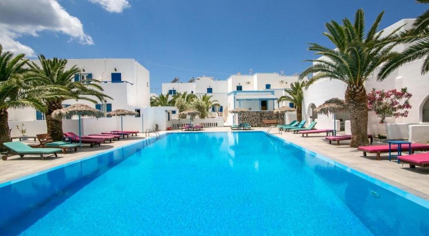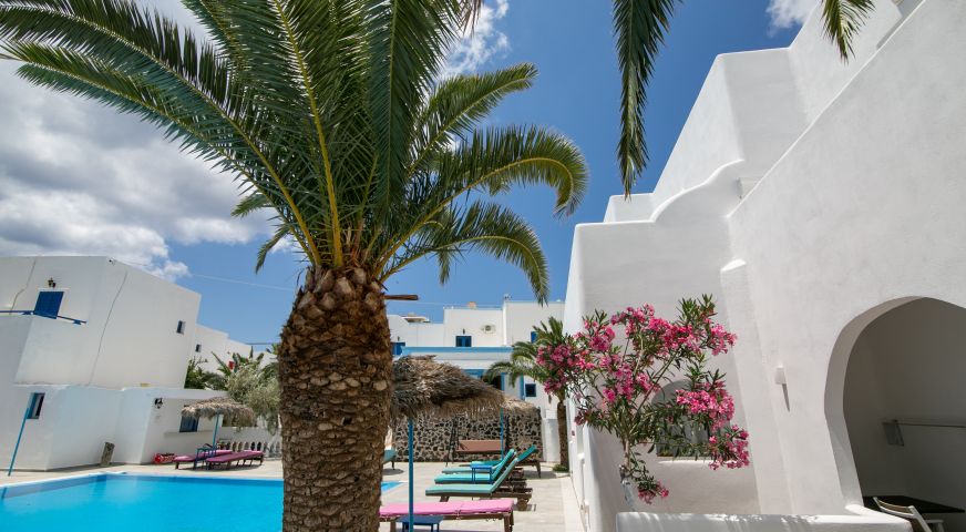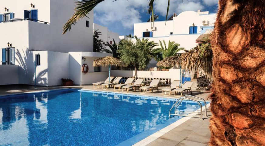 Хотел Gardenia 3* се намира в курорта Периса, само на 150 метра от оживената крайбрежна и черният пясъчен плаж. Летището на Санторини е на 13 км, а централното пристанище Атиниос - на 10 км. Столицата Фира е на 10 км.