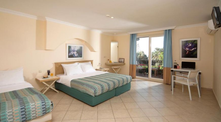 Хотелът разполага с общо 478 стаи: 25 Standard Rooms with Sea View (22 кв.м, тераса или френски балкон), 198 Standard Rooms with Pool and Garden View: Bathroom (22 кв.м, тераса или френски балкон), 9 Superior Rooms with Sea View (28 кв.м, (22 кв.м, тераса или френски балкон), 25 Superior Rooms with Garden View:(28 кв.м, балкон), 11 Family Rooms with Sea View (2 стаи, 1 баня, тераса или френски балкон, 33 кв.м), 171 Family Rooms with Pool and Garden View(2 стаи, 1 баня, тераса или френски балкон, 33 кв.м), 14 Pet-Friendly Rooms: (28 кв.м, тераса или френски балкон, удобствата за домашни любимци: храна, купа за вода, лакомства и торби за отпадъци). Всички стаи са оборудвани с климатик, телевизор, телефон, баня с душ, сешоар, мини бар (платен), сейф (платен), тераса или френски балкон. Почистване на стаите - всеки ден, смяна на спалното бельо и кърпите - 2 пъти в седмицата.