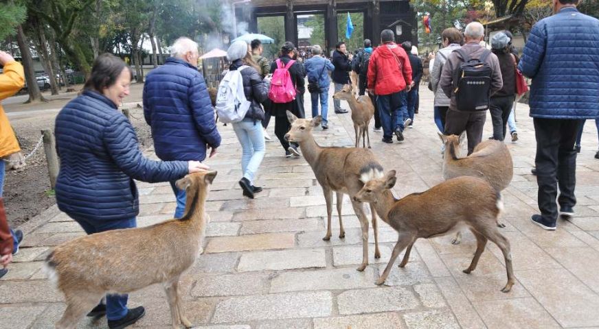 Закуска. Отпътуване за старата столица Нара (46 км). Пристигане в Нара и посещение на будисткия храм Тодайджи – един от седемте най-големи в Япония. Основната сграда е призната за най-голямата дървена конструкция в света и приютява колосалната бронзова статуя на Буда с височина 15 м. Разглеждане на шинтоитското светилище Касуга Тайша, използвано и като семейна гробница на фамилията Фудживара, дала на Япония много регенти и императори през периода Нара. Паметник на ЮНЕСКО, гробницата впечатлява с украсата от многобройни бронзови и каменни фенери. В храмовия комплекс са разпръснати множество по-малки светилища, разположени по протежение на пътя покрай главния храм и посветени на дванайсетте бога на късмета. Комплексът e известен и със своя парк с елени, където животните се разхождат на свобода и могат да бъдат наблюдавани. Обяд. Разглеждане на храмовия комплекс Кийомидзу – един от най-древните храмови комплекси в страната, издигнат недалеч от водопада и кристално чистата вода в планината Отова. Разглеждане на храма Санджусанген-до – датиращ от 1266 г. и съхраняващ изумителните 1001 статуи на богинята Канон. Отпътуване за Осака (32 км). Пристигане в Осака. Посещение на стария квартал Шинсекай, по улците, на който ще откриете типични магазинчета и ще можете да зърнете извисяващата се над него кула Цутенкаку. Нощувка в Осака.