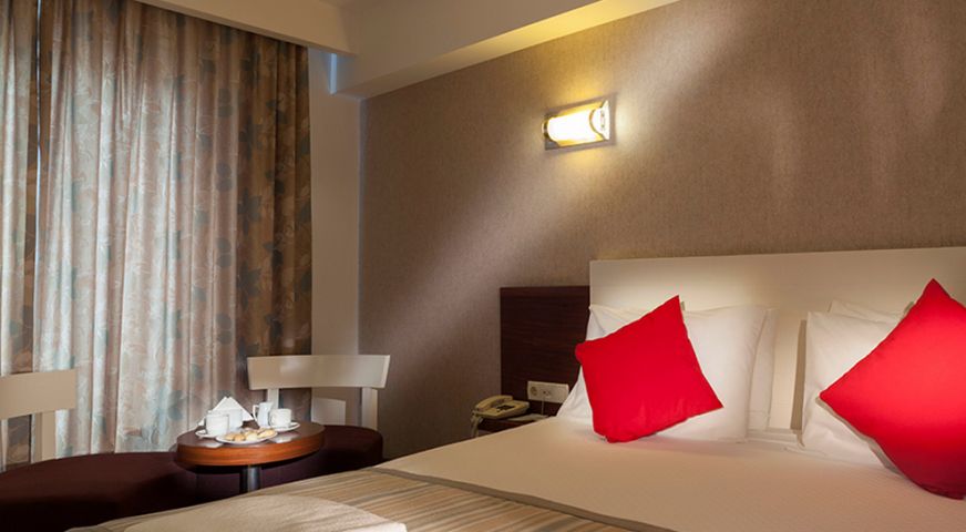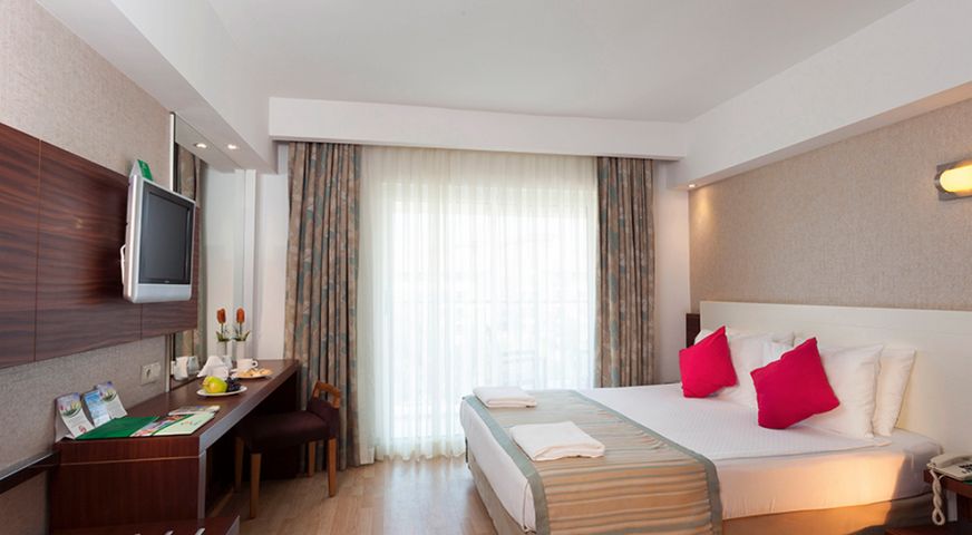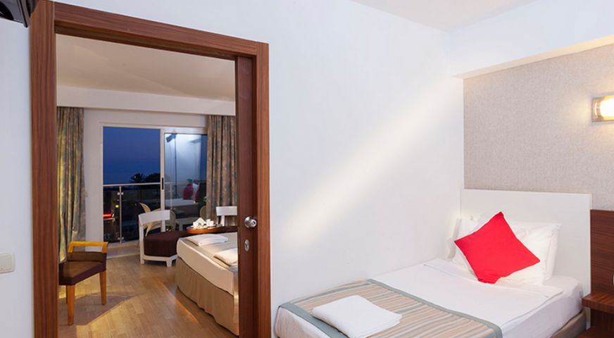 Хотелът настанява гостите си в пет 6-етажни корпуса, като половината от стаите са с гледка към морето. Разполага с общо 260 климатизирани стаи, в които има минибар, безплатен достъп до Wi-Fi и сателитна телевизия, както и баня с душ, сешоар, балкон с изглед към морето или градината. Някои имат допълнително двуетажно легло. Стаите се почистват всеки ден, а спалното бельо се сменя три пъти седмично.