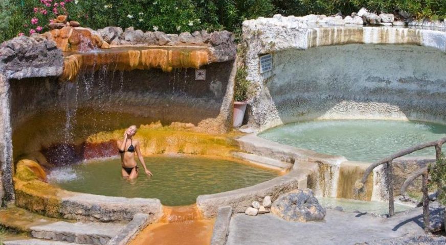 Хотелът има открит сезонен басейн и закрити термални басейни.