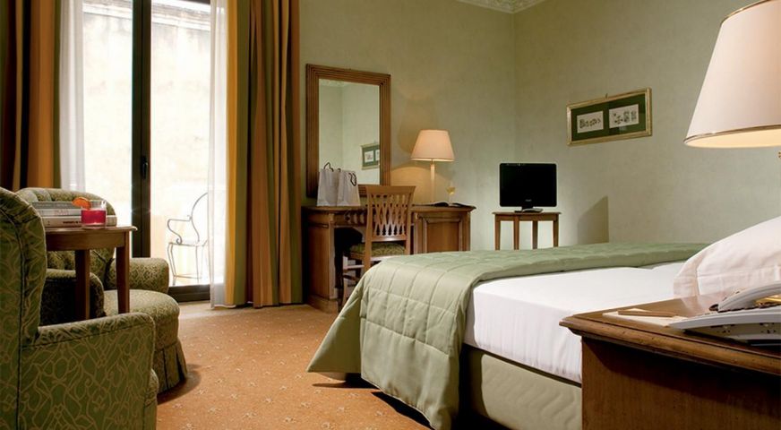 Хотелът предлага 130 стаи в класически стил с безплатен Wi-Fi, сателитна телевизия и безплатни безалкохолни напитки от минибара. Предлага се платен паркинг. Повечето стаи са с изглед към главния двор, а някои имат балкон с изглед към улицата.