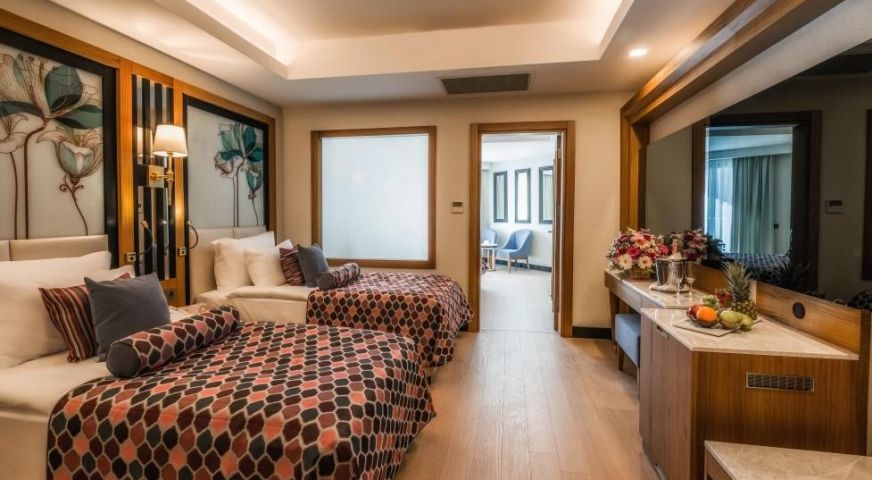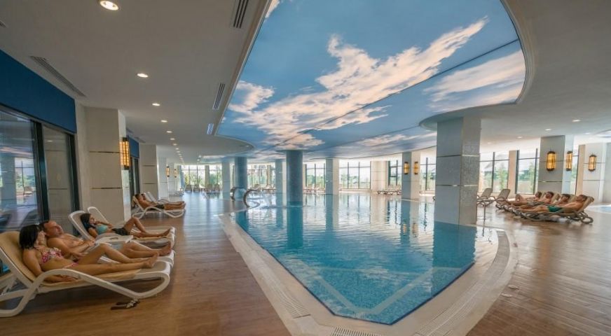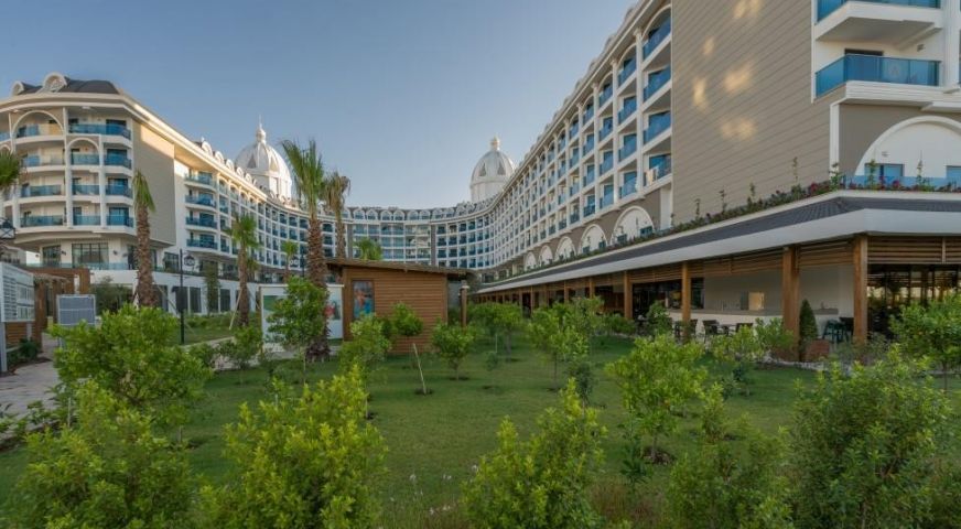 Разположение: Хотелът се намира на 10 км от летището в Анталия, на 15 км от центъра на гр. Анталия, на брега на морето. Открит е през 2016 г. върху територия с обща площ от 45 000 м2.