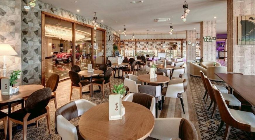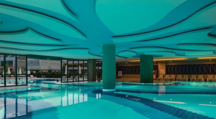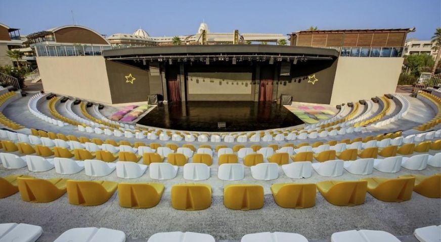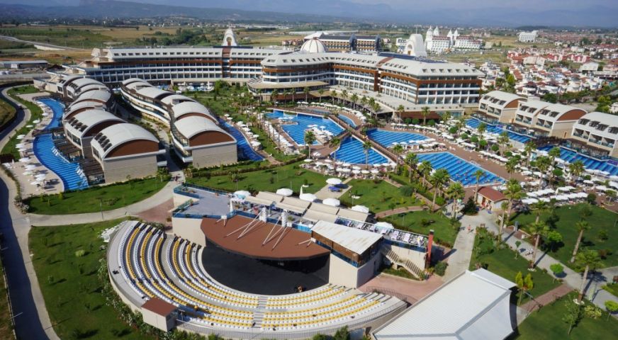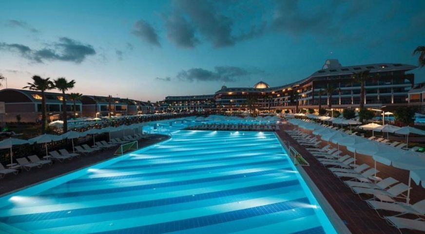 На територията на хотела: Основен ресторант, 7 ресторанта a la carte (бързо хранене, турска кухня, морски дарове, международна кухня, италианска кухня - с резервация; японска кухня и стек хаус - с резервация, платено), 5 бара, сладкарница, 3 снек ресторанта, 7 открити басейна (има басейн тип relax 16+), закрит басейн, Аквапарк, Спа център, магазини, фризьорски салон, конферентна зала.