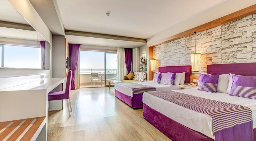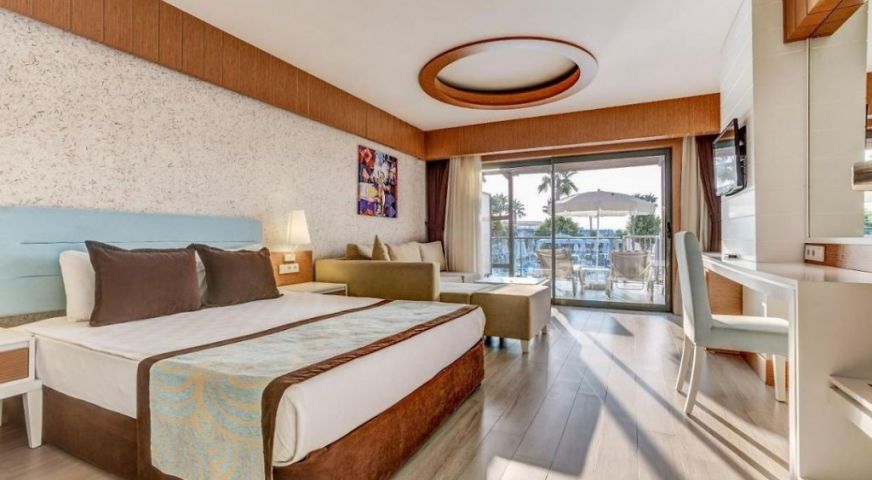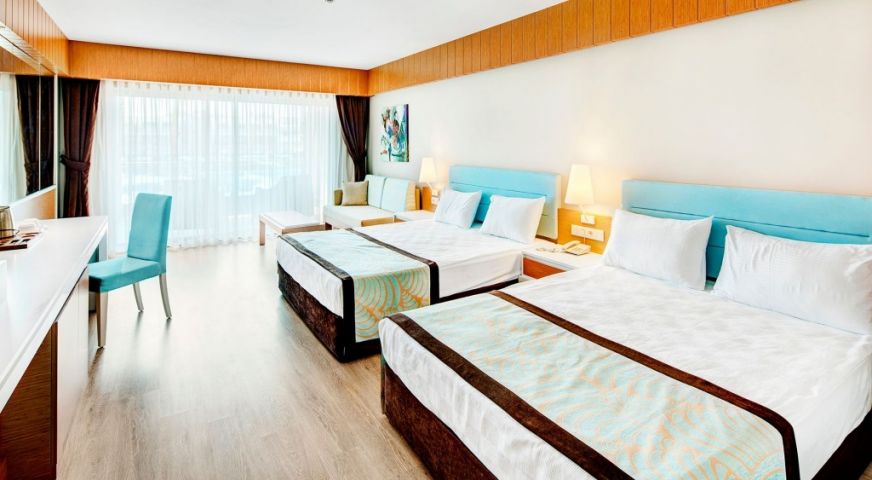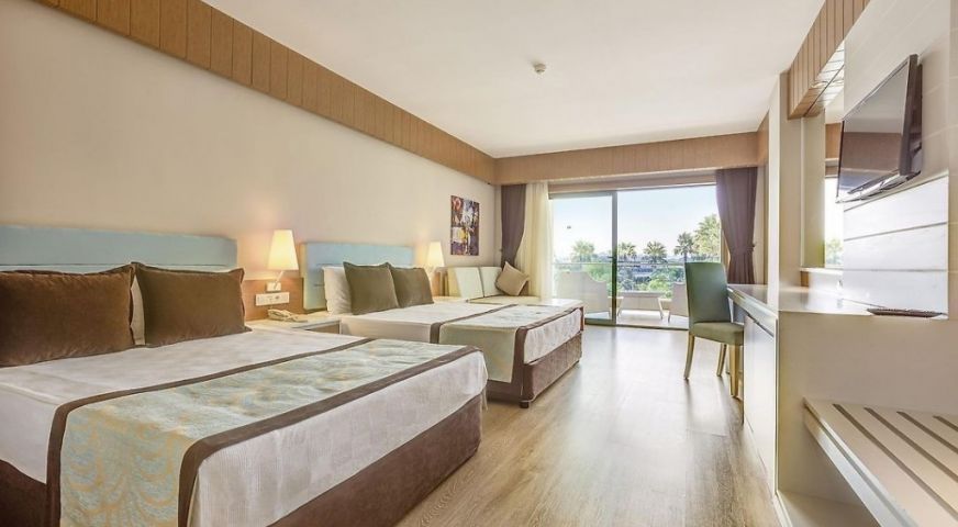 В стаите: Хотелът се състои от 6 етажна основна сграда + 29 бунгала и разполага със 774 стаи. Стаите са оборудвани с индивидуален климатик, LCD-телевизор, телефон, душ, сешоар, минибар (зареден при настаняване с вода и безалкохолни напитки), сейф, набор за приготвяне на чай и кафе, балкон, Wi-Fi (безплатно), под - ламинат. Почистване на стаите – ежедневно, смяна на спално бельо - 3 пъти седмично.